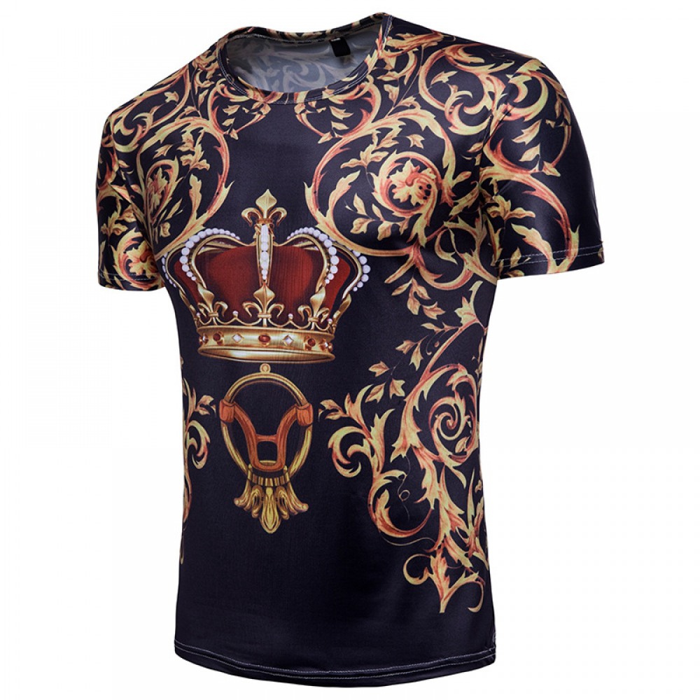 Men's 3D Shirt Palace Style Crown Print, Short Sleeve T-Shirt