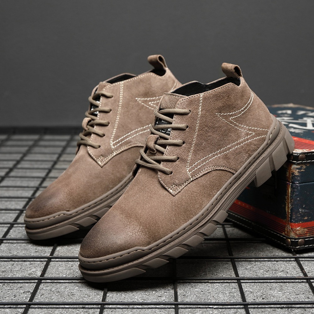 Men's Leather Short Martin Boots Casual Trend Tooling Boots High-Top Shoes