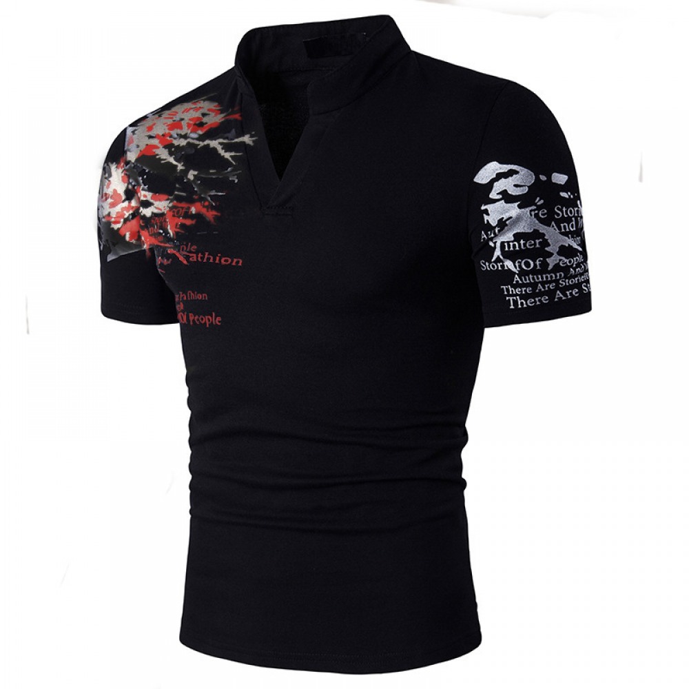 Men's Short-Sleeved T-Shirt V-Neck Printing Stock