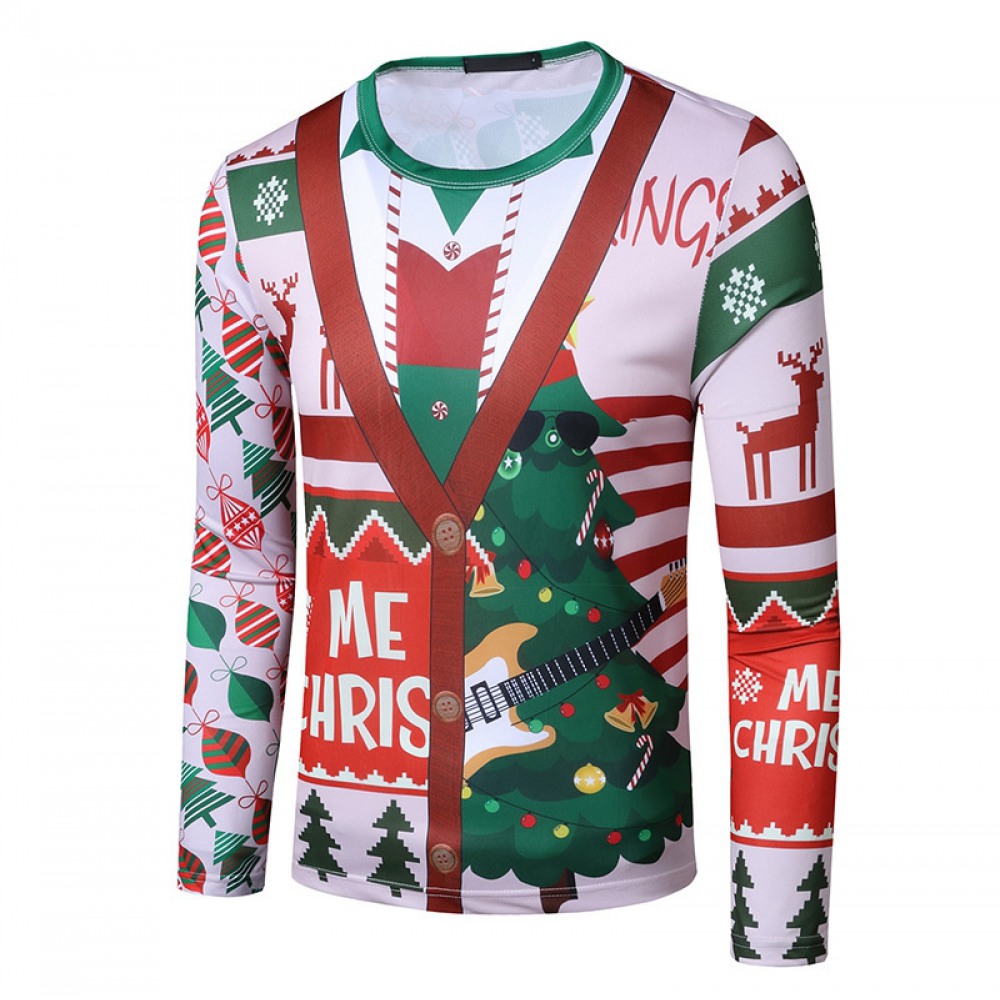 New 3D Personality Printing Fashion Men's Christmas Long-Sleeved T-Shirt