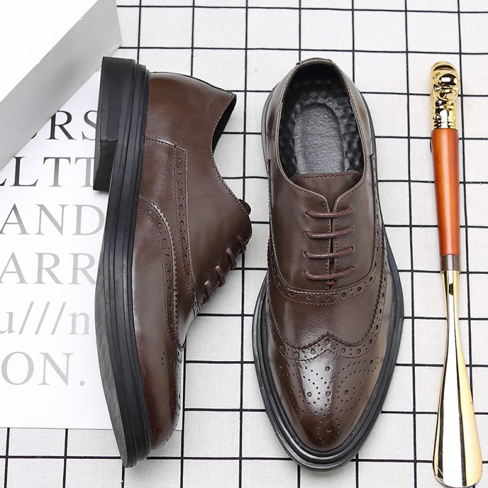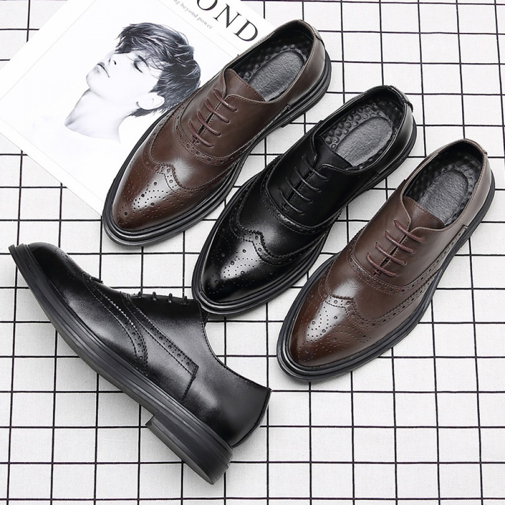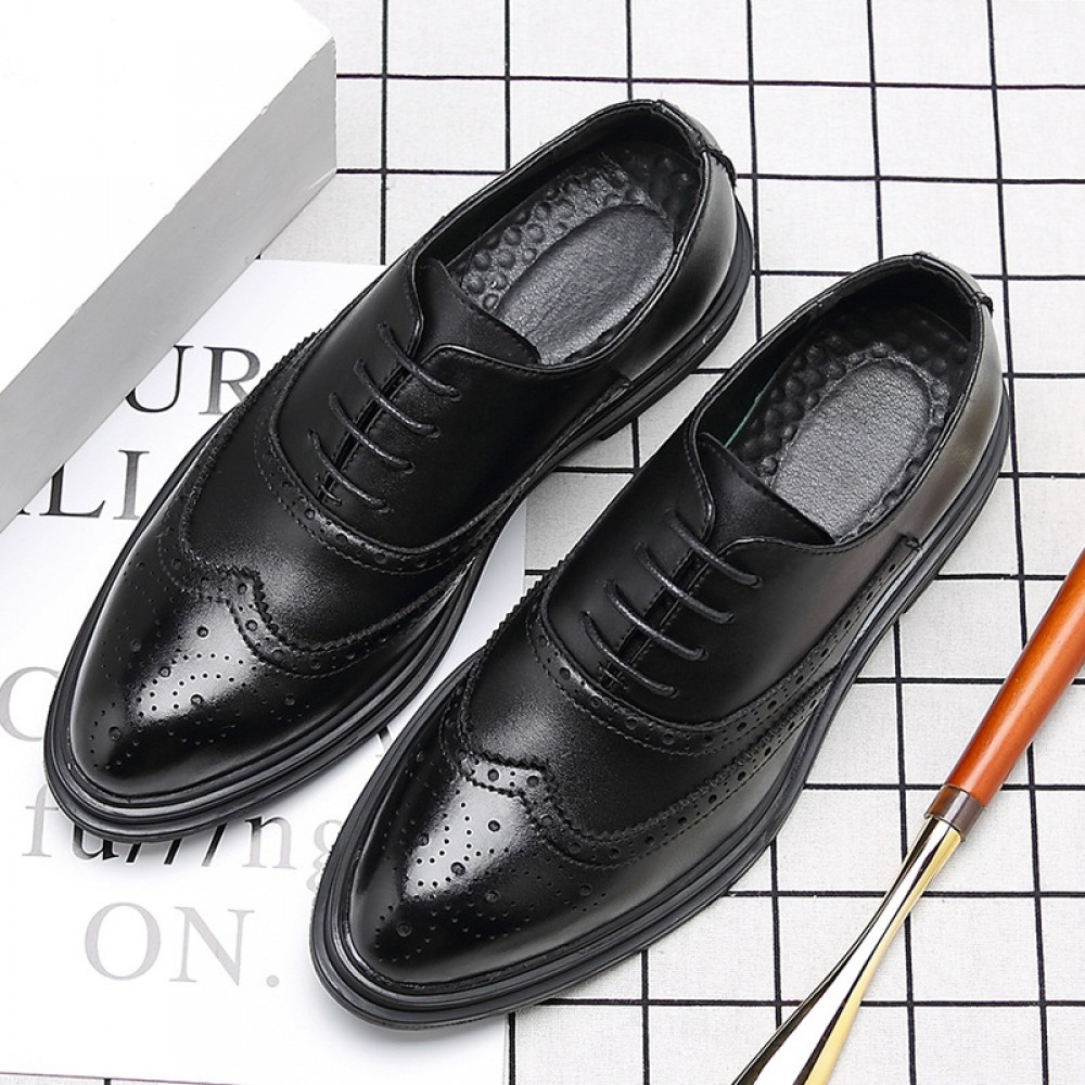 Black Men's Trend Casual Leather Breathable Shoes