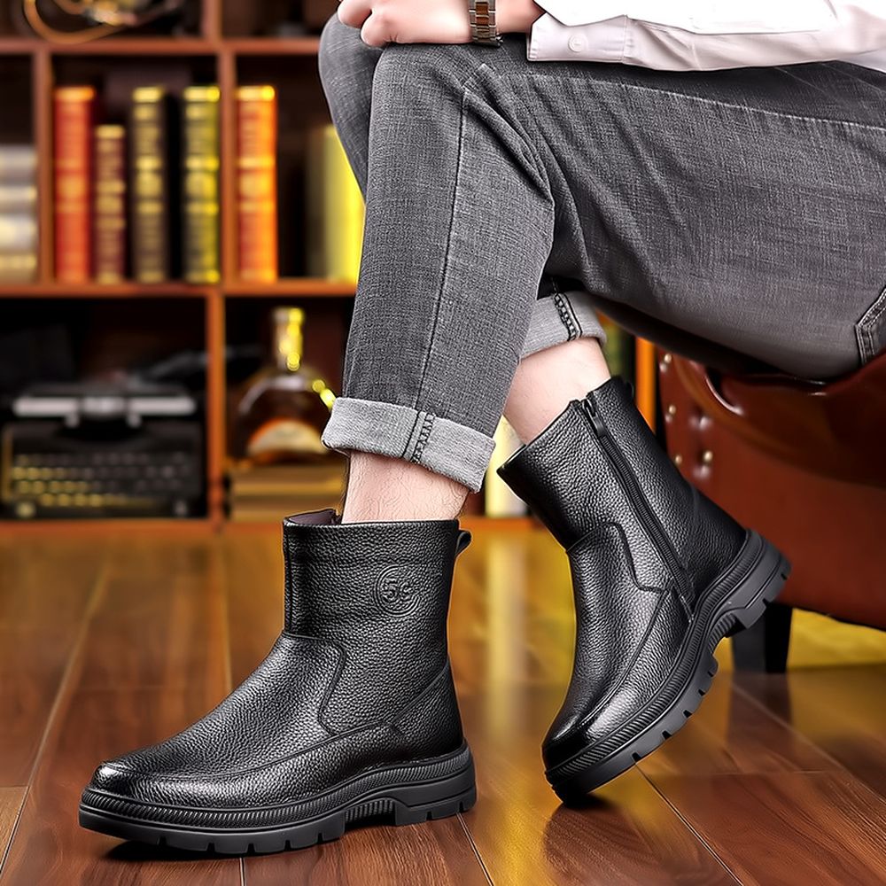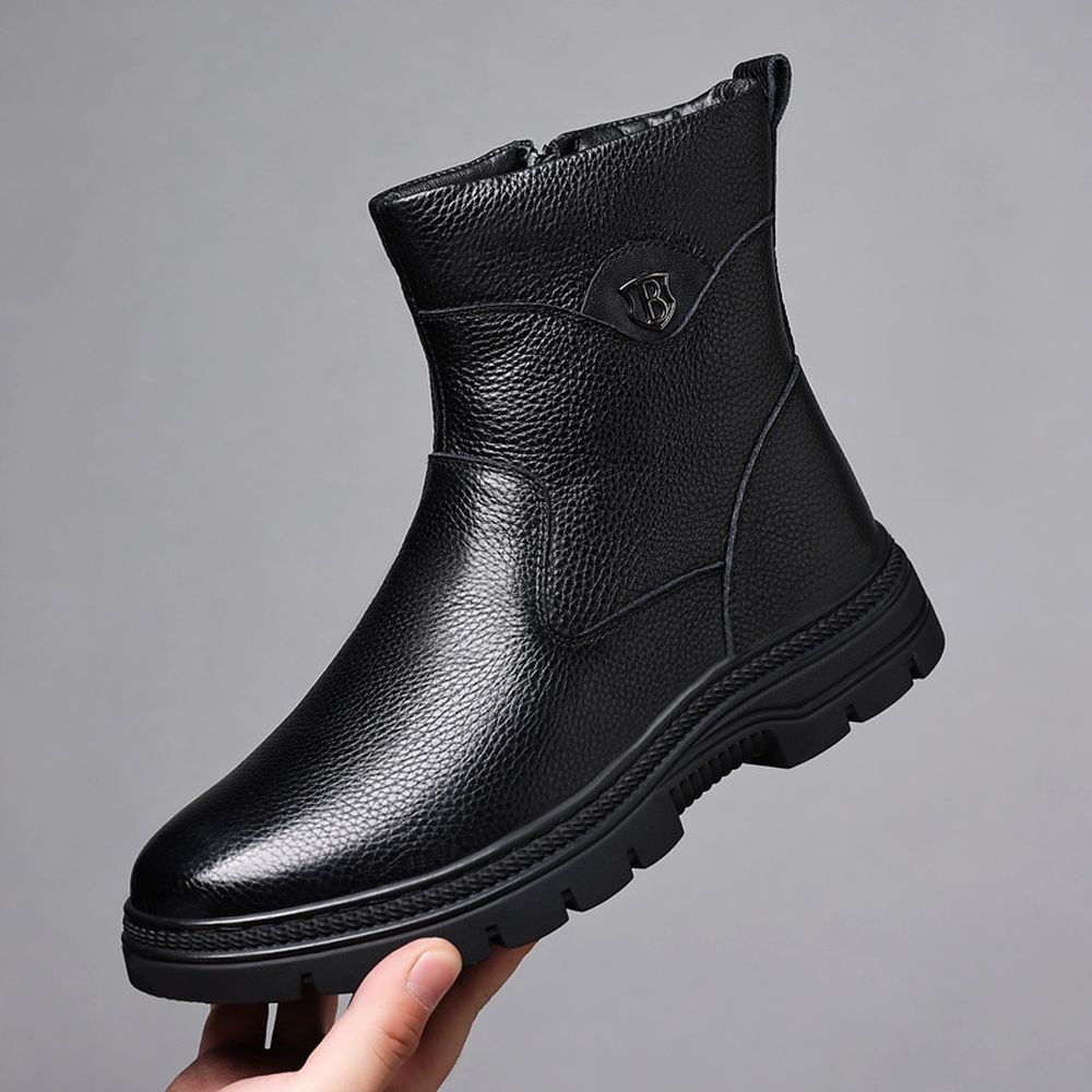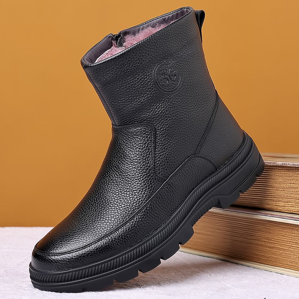 Men's Cotton Shoes Cowhide High-Top Snow Boots Plus Fleece Warm Boots