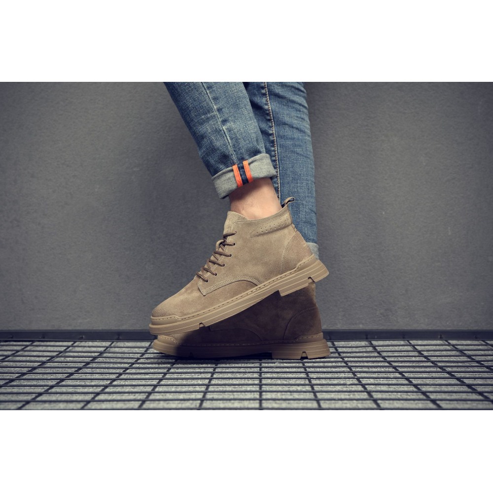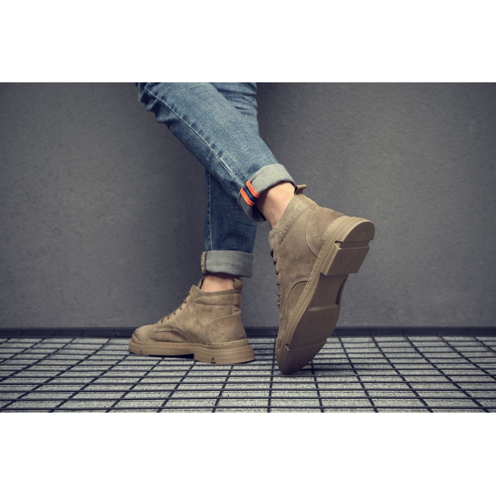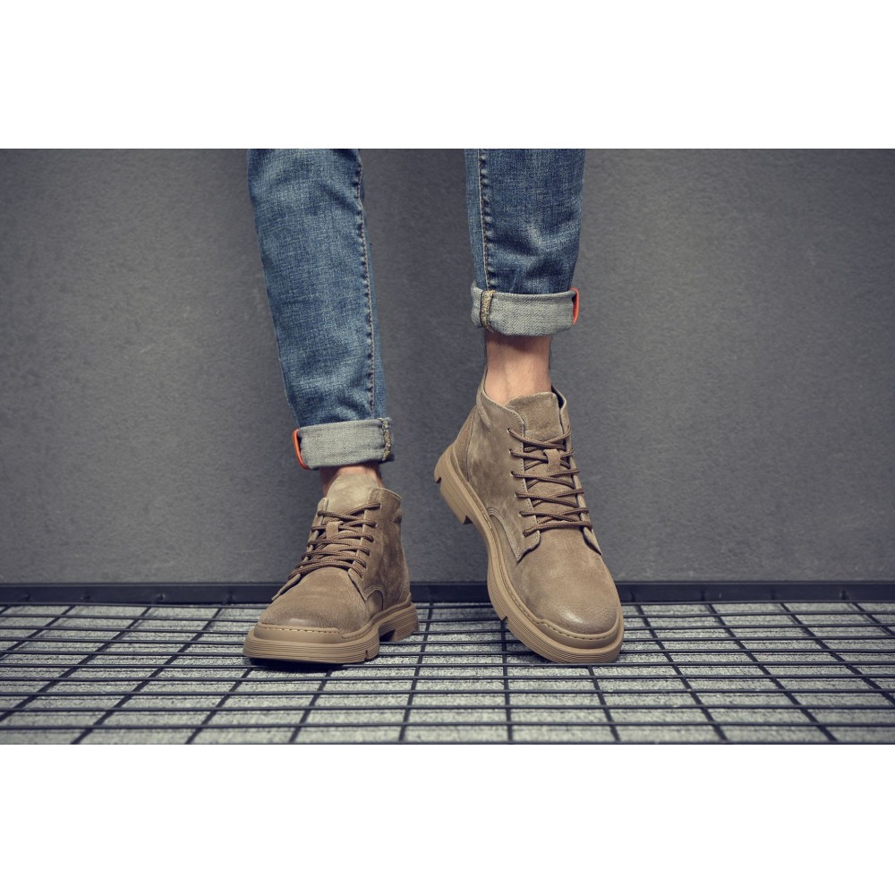 Men's Leather Short Martin Boots Casual Trend Tooling Boots High-Top Shoes