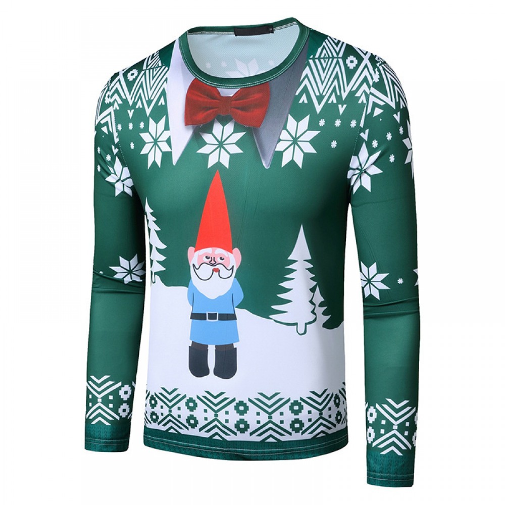 New 3D Personality Printing Fashion Men's Christmas Santa Pattern Long Sleeve T-Shirt