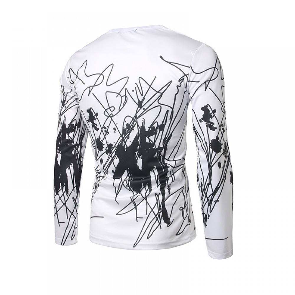 New Style Men's Personality Black and White With Abstract 3D Printing Long-Sleeved Round Neck T-Shirt