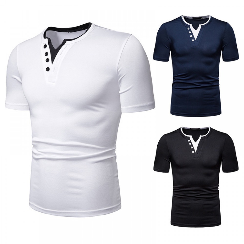 New Summer Thin High Stretch Men's Color Matching V-Neck Short-Sleeved T-Shirt
