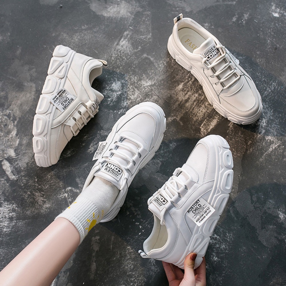 White Women Spring New Thick-Soled Increased Board Platform Shoes
